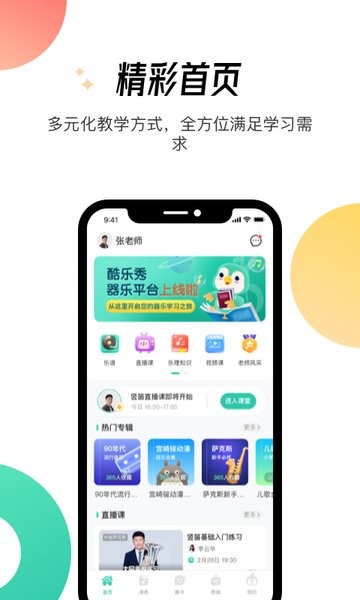 酷乐秀app为用户带来更多的乐器学习课程,让用户轻松的学习乐器,软件之中拥有许多专业的管乐学习课程,还安宁的名家名师在软件之中为用户授课,还有老师作为陪练。