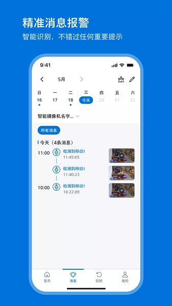 强大的存储功能,支持历史视频回放。无论是孩子的成长瞬间,还是家中的温馨时刻,都能被完美保留。随时回顾,让美好记忆永不褪色。