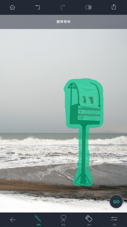 通过笔刷或者套索,涂抹或者圈定需要删除的物体后点击 GO 即可。