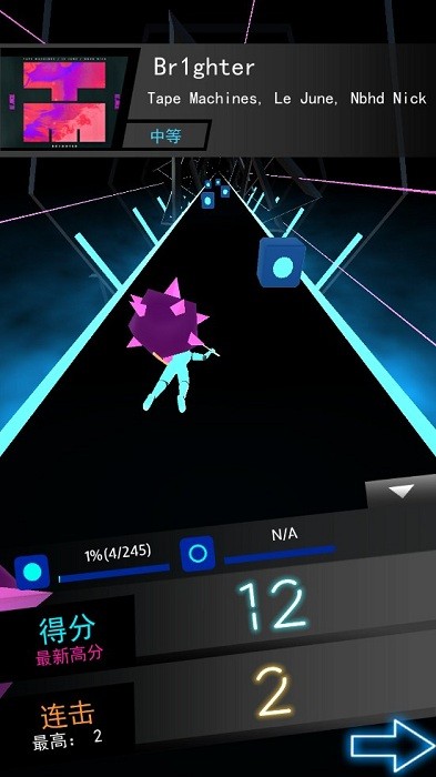 2、每一个关卡你可以选择不同的歌曲来让你的游戏更有快感,沉浸于超强的节奏之中吧。