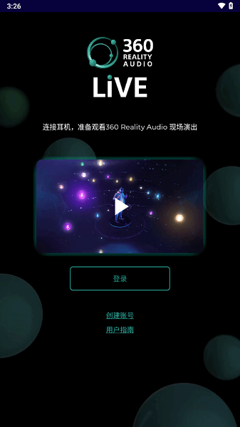 360 reality audio live官方版是一款音频处理播放的流媒体音频工具,一键注册创建账号登录,连接智能耳机设备使用,随时在线观看360 Reality Audio现场演出,带来360临场音效,自由设置管理,给人3d沉浸式的音频体验,全方位环绕!