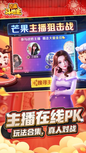 抖音芒果斗地主手机版完整版是一款创新了玩法的特色手机斗地主游戏,这里都是真人对战,还可以和主播进行PK,赢取金豆。游戏把多种斗地主玩法进行结合,包括八宝牌、连炸、经典玩法、不洗牌、超级加倍等,玩家可以根据个人爱好进行选择。