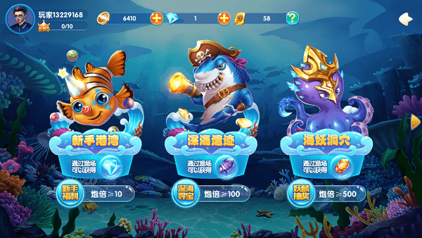 多种渔场:设有多种渔场,如珊瑚礁、深海、火山口等,每个渔场都有独特的鱼群和BOSS。