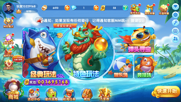 对于新手来说,完成任务和击败BOSS鱼也能轻松获得奖励。游戏里还有丰富的奖励机制,比如签到送金币、完成任务拿奖励,甚至有“集钻送金币”这种活动,总之福利挺多的。