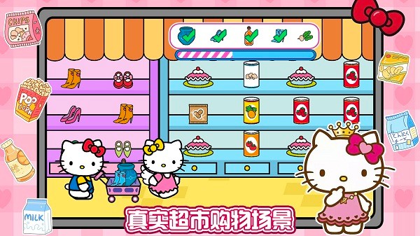 凯蒂猫超市购物是一款非常有趣的休闲益智手机游戏。这个凯蒂猫游戏的重点是超市风格。玩家可以在超市体验凯蒂猫家庭购物,适合儿童。
