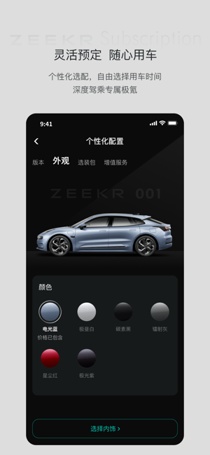 -- 随心定制:外观、配置随心选,订阅你的专属极氪001