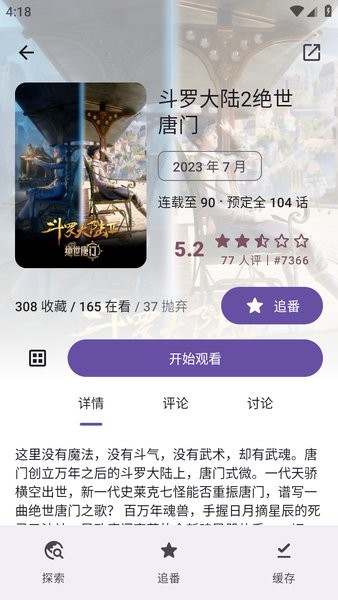 3.播放稳如泰山,只要你发现想看的动漫,轻点一下,马上就能开启精彩之旅。全程无卡顿,稳定的追番体验,让你全身心沉浸在动漫的精彩情节里,尽情欣赏每一个画面。