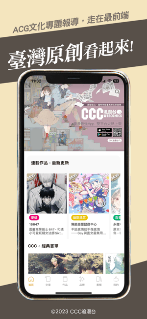 滑动指尖,随时享受台湾原创漫画!最具共鸣的原创漫画,实力坚强的台湾漫画家,通通都在《CCC追漫台》!