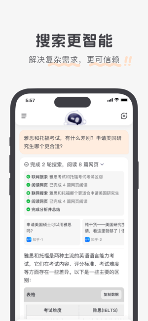 联网多步智能搜索,轻松搞定各种难题!实时搜索信息,内容溯源,提供更详尽准确的回答。