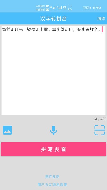 汉字拼音转换app是你学习汉字拼音好帮手。快速查询汉字、词语、句子、作文的拼音及声调。