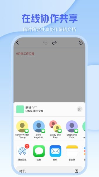 word文档表格编辑支持word、excel、ppt等文档在线实时编辑,您可以将手机的word文档、excel表格导入文档表格编辑方便文件管理,也可以新建word、excel、ppt进行在线文档编辑制作,实现高效移动办公。