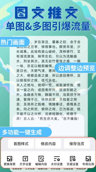 「易推文」是一款好用的小说推文工具,支持解析所有热门小说平台;支持图文推文、滚动视频推文等一键生成;支持文字合成语音、一键替换敏感词、去水印等功能;无广告,无推送,无后台,请大家放心使用!