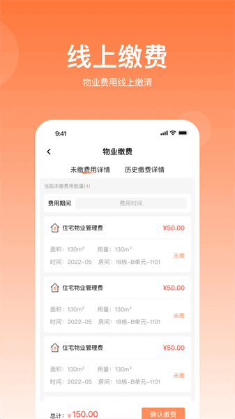 物业缴费/预存、临停缴费、月卡办理、公区报修、家政维修……业主足不出户即可办理业务。