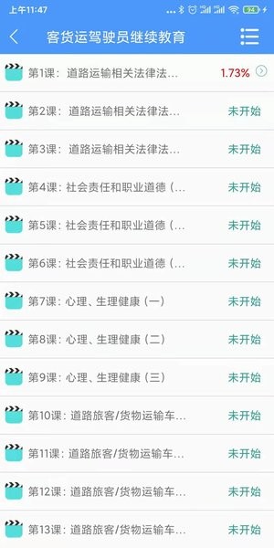 3.登录后,您可以观看视频课件。应用程序自动记录用户的学习记录,并将其上传到管理部门的后台。