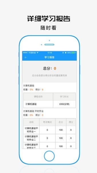 专业数据统计,清楚掌握学习情况,支持一键查询考试得分。
