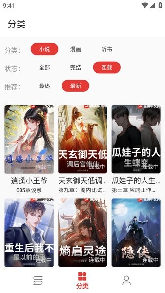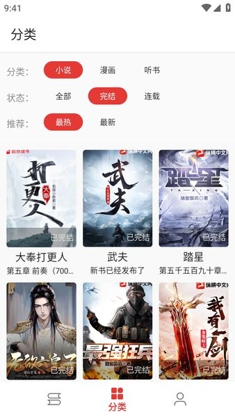 涵盖小说、漫画、有声读物等多种阅读资源,包括经典文学、科幻奇幻、都市言情、历史军事等各类题材,满足不同用户的阅读需求。