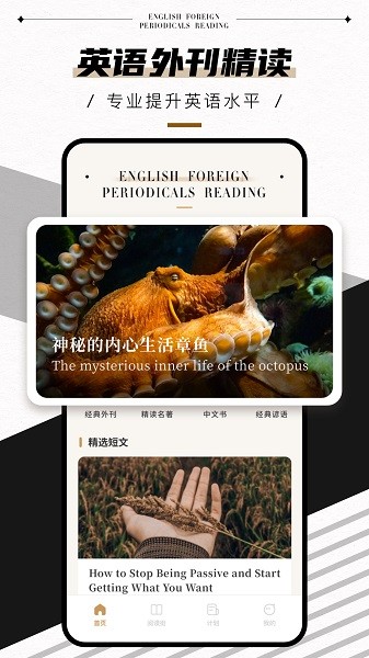 英语外刊,提供最精致的英语美文阅读服务,软件海选各种题材优秀的文章作品,帮助用户在阅读中很好的提升英语能力,满足用户的各项阅读需求,软件支持双语翻译,阅读更加轻松,有需要的用户可以下载使用!