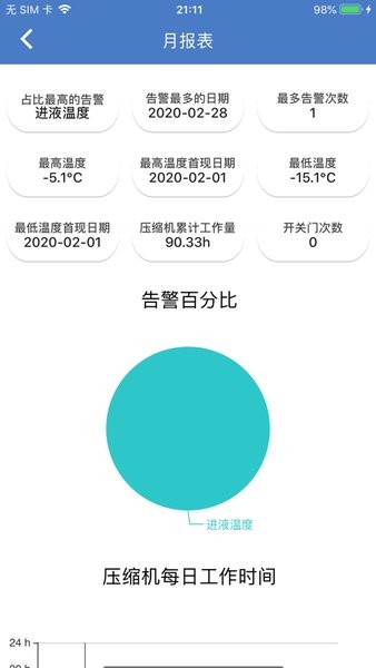 冷库发生故障,2分钟内获得手机报警提醒,用户可在闲时集中查看预警信息,报警信息按照紧急程度进行分级发送,同时降低对用户的骚扰;