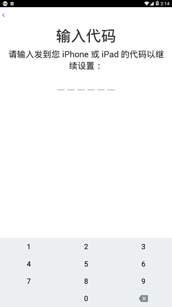 在安卓设备上输入代码。然后等待“传输数据”屏幕出现。代码需要配对正确,根安卓设备上的蓝牙配对很像。