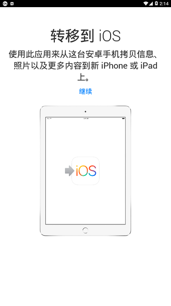 2、打开“转移到 iOS”App