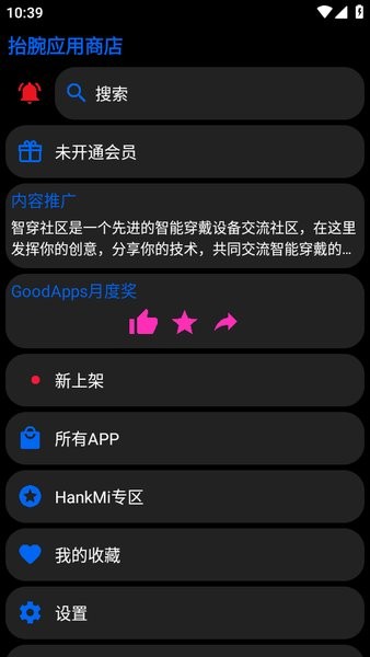 hankmi应用商店安装包专为安卓手表打造的应用商店,独立用手表安装上百款手表应用,无需ADB,支持独立下载应用和安装。更美妙的是,这是完全免费的。新版本支持应用上架提醒,显示更详细的应用详情。