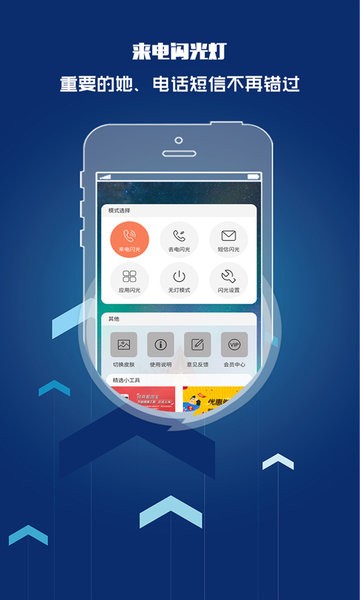 开启来电闪光灯功能,让手机变成led闪烁灯。支持一键简单设置,也支持专业的毫秒级闪光提醒定制化设置。