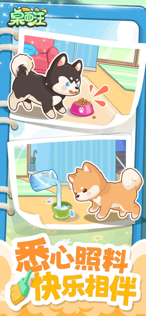 领养的狗狗拥有自己的性格和行动,用户需要准备食物、保持环境整洁,悉心养育。