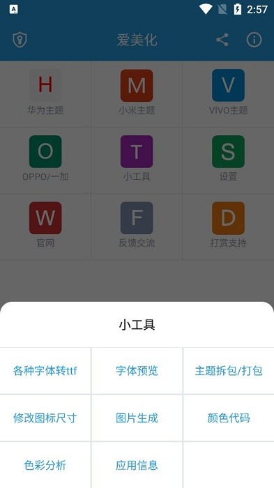 2、支持图片制作,拆包打包,字体转换,调色等等功能,非常齐全,ttf字体转小米、mtz字体、VIVO字体。