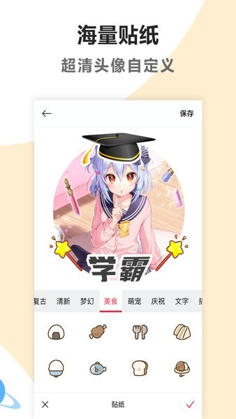 在这里还有海量的贴纸为用户们展示,制作的头像更加的精美好看。