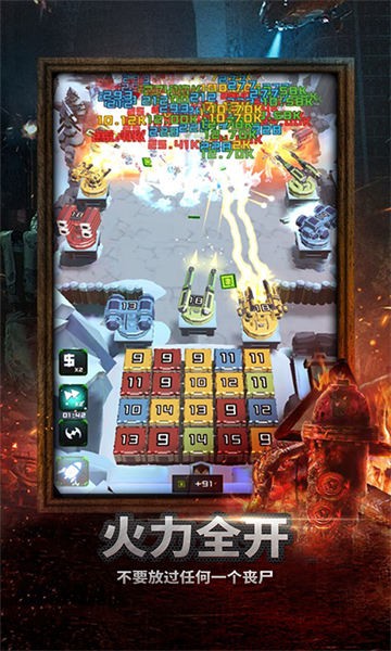 丧尸不断来袭,作为指挥官的你保持头脑清晰!不断的升级武器合理的放置火力点阻挡僵尸前进!在进攻中不断的学习成长,血量越来越多,低等级的武器很难打破他们的护甲,指挥官需要更多金币合作先进武器释放出更加强大的火力击碎他们的护甲将他们打倒!