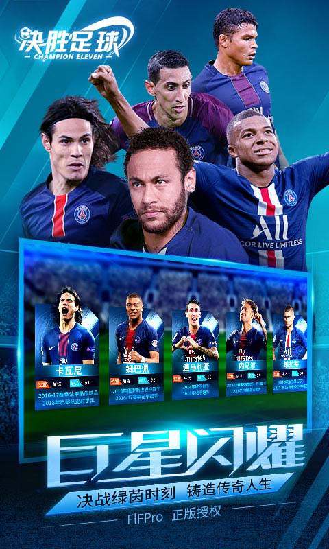 决胜足球游戏是由fifpro官方授权的足球手游,在这里玩家们能够找到超多的知名球员的形象,c罗、梅西、李毅、范志毅等等等等知名球星在这里全都能够看到,在这里不断的组建自己的球队,进行球队之间的球员交易,给自己的球队补充新鲜血液。游戏有着超级真实的画面,各种足球比赛能够让玩家们参加,享受足球游戏带来的乐趣。