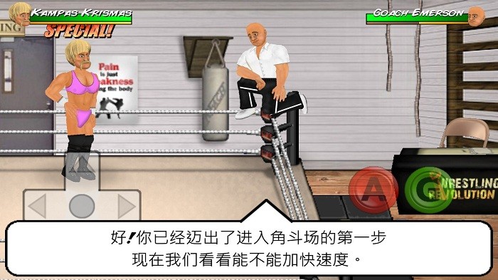 《摔跤革命2D》是一款像素风格的摔跤游戏,玩法简单但刺激,适合喜欢格斗的玩家。游戏中你可以创建自己的角色,参加各种比赛或自己举办“展览”赛,尽情发泄情绪。操作方式也很直观,像攻击、抓投、嘲讽等动作都有对应的按钮,玩起来挺有趣的。