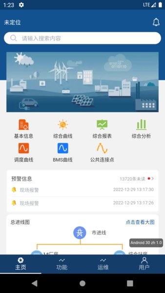 该软件运行于Android端,作为智能微电网的客户端,对智能微电网实时运行数据进行监控,以及运行管理管理。主要功能包括综合监控、能源统计、能源分析、能源优化以及智能运维等