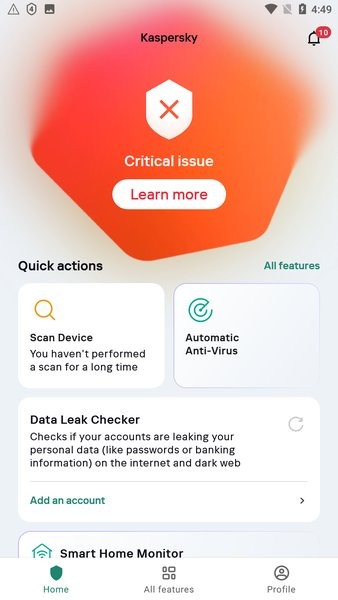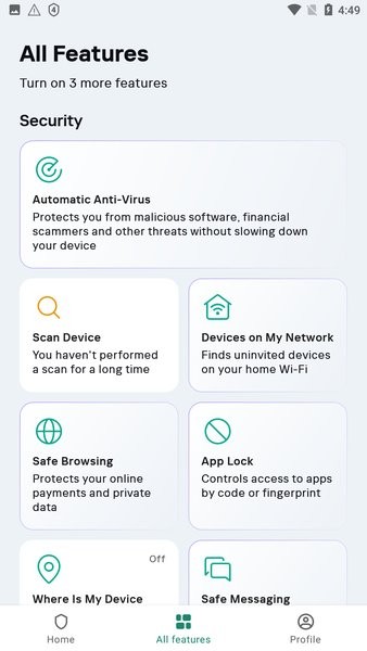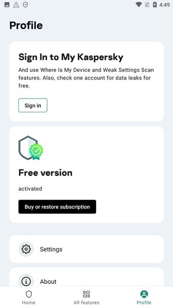 卡巴斯基面向Android终端的安全对策应用程序卡巴斯基网络安全for Android是综合安全对策软件。保护比电脑在安全方面危险性更高的智能手机、平板电脑以及该终端中包含的个人信息免受网络威胁。除了收费版之外,还准备了免费版。