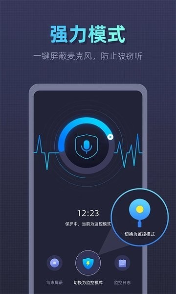 防监听卫士手机版是一款提供防窃听的安全工具,守护你的通话安全。24小时全天候守护,实时监测监听,自由切换监控模式,一键屏蔽麦克风,还可以自定义屏蔽时间段,防止被窃听,保护隐私不被泄露,使用安全放心,操作简单!