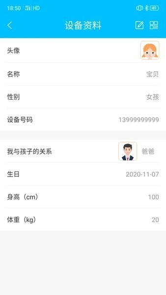 - 在智天使3APP中,家长可以查看和管理智能儿童手表的相关资料,如手表型号、固件版本等。