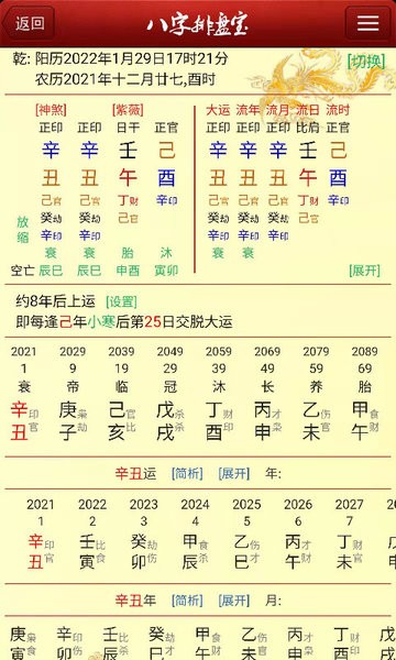 能够显示具体的大运交接时间,并且可动态排流年、流月、流日、流时,帮助用户了解不同时间段的运势变化,以便提前做好规划和应对。