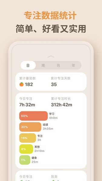 2、从专注数据统计到数据时间轴,极简番茄钟为用户提供了全方位的时间管理支持。