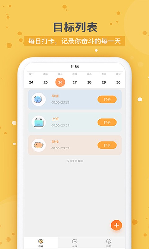 根据自己的需求编辑制定目标,比如每天喝八杯水、减肥、健身、练习瑜伽、跑步、背单词、戒烟、看书、不看手机、不玩王者荣耀等,战胜懒癌开启自己的新旅程。