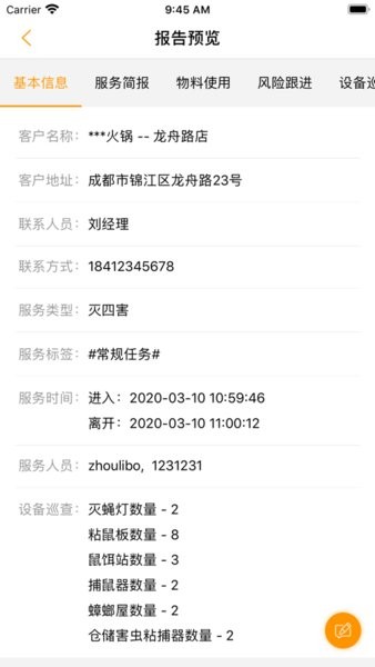 这款app的一大亮点是支持现场数据收集与管理,比如记录物料使用、设备巡查、风险跟进以及拍摄工作照片等,并能自动生成电子报告分享给客户签名和点评。此外,系统还提供丰富的虫害防治培训课程,帮助员工提升专业技能。