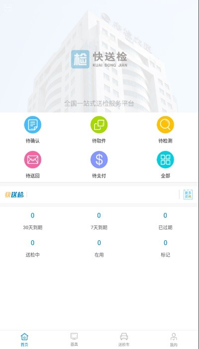 快送检最新版本app提供了便捷的检测管理服务,能够在手机上查看送检状态,待确认、待检测、代取件、待支付以及待送回都可以看得清清楚楚,能够查看委托快送检的送检车物流,可以按照有效期、检定费等来进行筛选。