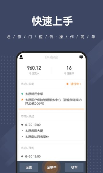 新入驻的司机无需专人指引则可以轻松上手接单,傻瓜式的操作非常简单;