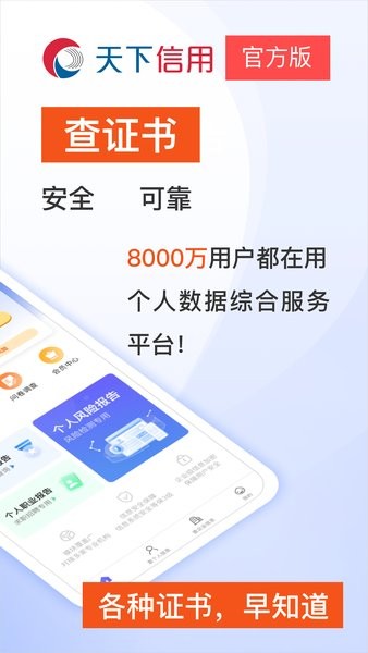 天下信用个人风险报告查询为用户带来更加实用的个人征信插叙你,让用户可以知道个人的信用信息,让用户找合作伙伴更加的靠谱,用户还可以福是好事查证书和查风险。