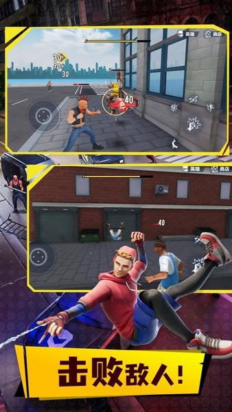 1、体验生动的攻击感,在战斗中不断磨练自己的技能,成为势不可挡的超级英雄。
