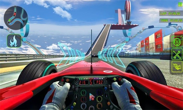 玩家在游戏中需要驾驶赛车驶过精心设计的特技赛道,并抵达终点