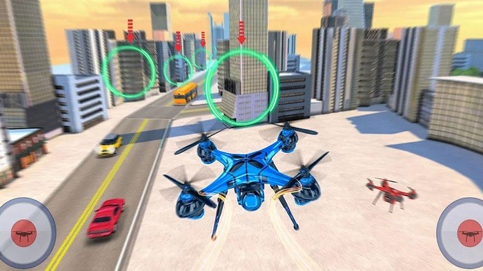 我最喜欢的是上帝视角的控制方式,用虚拟摇杆就能飞来飞去,体验感很强。每次完成任务都有一种成就感,特别是飞过那些复杂的三维城市,感觉自己就是专业的无人机飞行员。