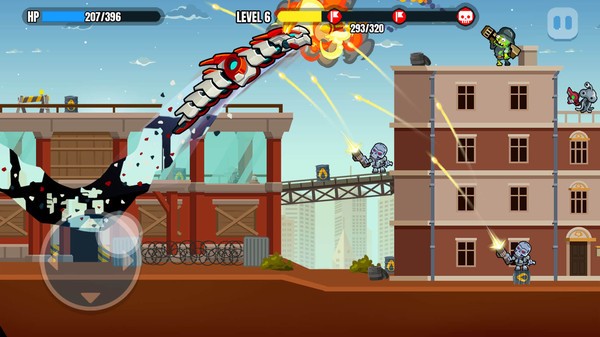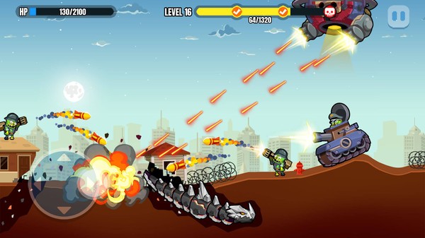 左手使用虚拟摇杆控制巨龙的方向。让巨龙利用建筑物的掩护,以及通过钻地躲避子弹和突袭,消灭眼前的邪恶外星人!空中的战机、地面的战车还有铺设的激光网络,都是你要注意的地方!与Boss激战之余,也别忘了好好享受一番大肆破坏的快感!