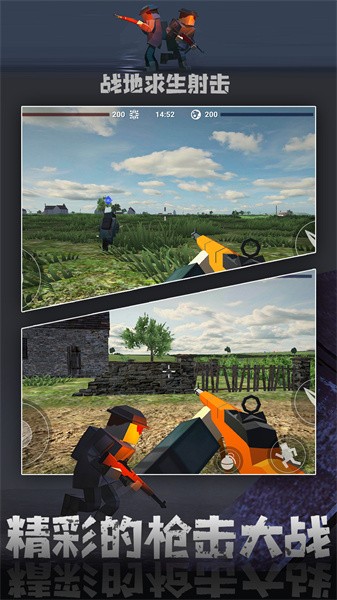 战地求生射击最新版是一个超级激烈好玩的射击对战类型的手游,这里有众多的枪战道具等提供给玩家选择,你可以任意组队,参与到激烈的战争当中 尽情感受射击对战的魅力与刺激感,喜欢的朋友快来下载试试看吧!