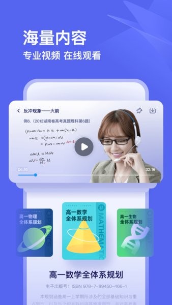 有道领世APP,以高中完整学习知识体系为框架,为普通高中、职业高中、成人自考等用户群体,提供电子音视频的下载、使用并提供学习规划与学习方法指导、生涯规划和职业规划指导,向用户提供个性化学习方案和督学服务。通过有道领世智能学习系统,学生可以体验智能学情诊断,定位关键薄弱点,制定AI学习路径规划,根据学情调整计划,全方位提升学生学习体验。高效学习,从有道开始。