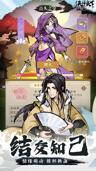 -- 结交知己共闯天涯,情缘萌动间推杯换盏。在江湖的洗礼下,你们之间的情谊愈发深厚,成为彼此生命中不可或缺的存在。
